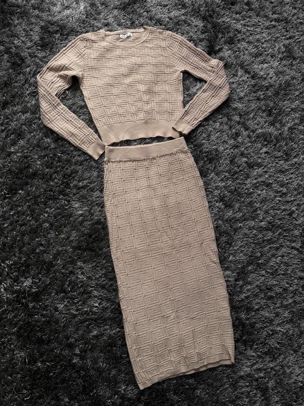 Вʼязаний костюм зі спідницею міді