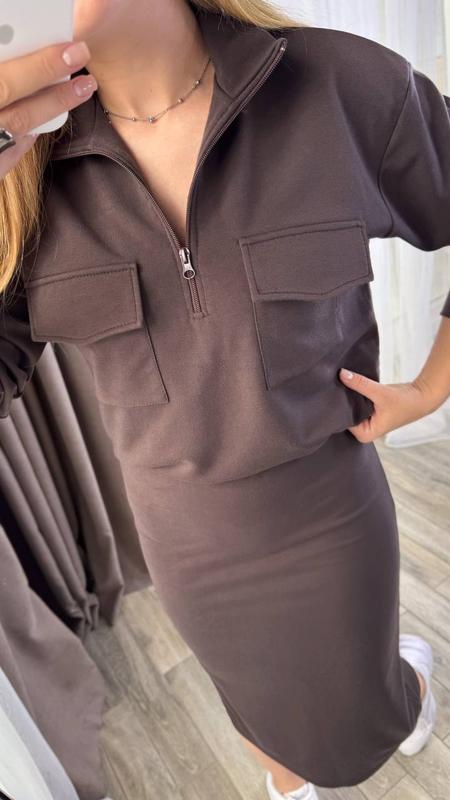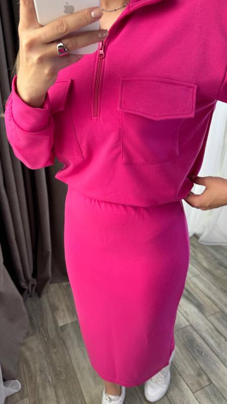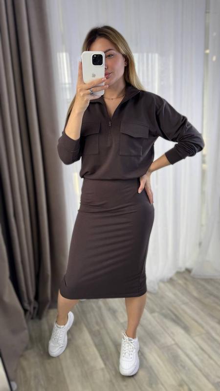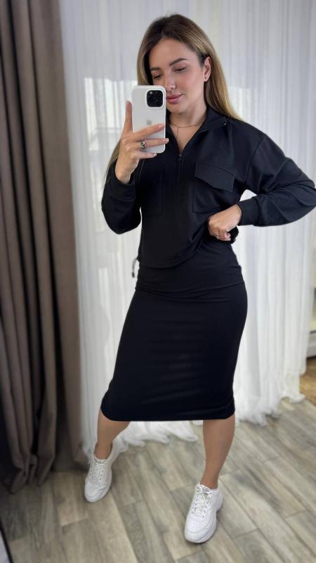 Костюм зі спідницею, талія на резинці, позаду розріз