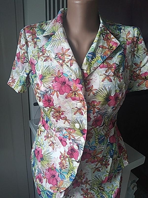 Неймовірний костюм на літо, виконаний із попліну з додаванням еластану. Скроєний з продуманих деталей, які добре підкреслюють жіночу фігуру. Кожна деталь прострочена.