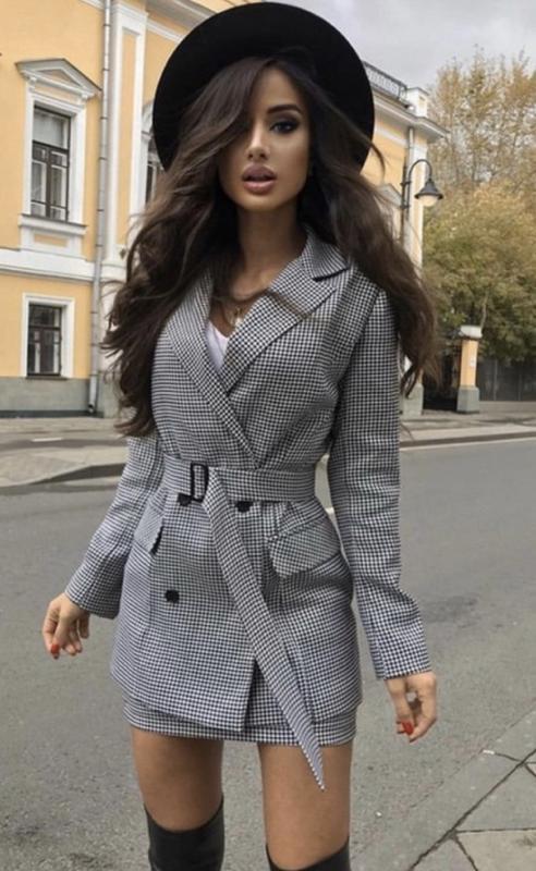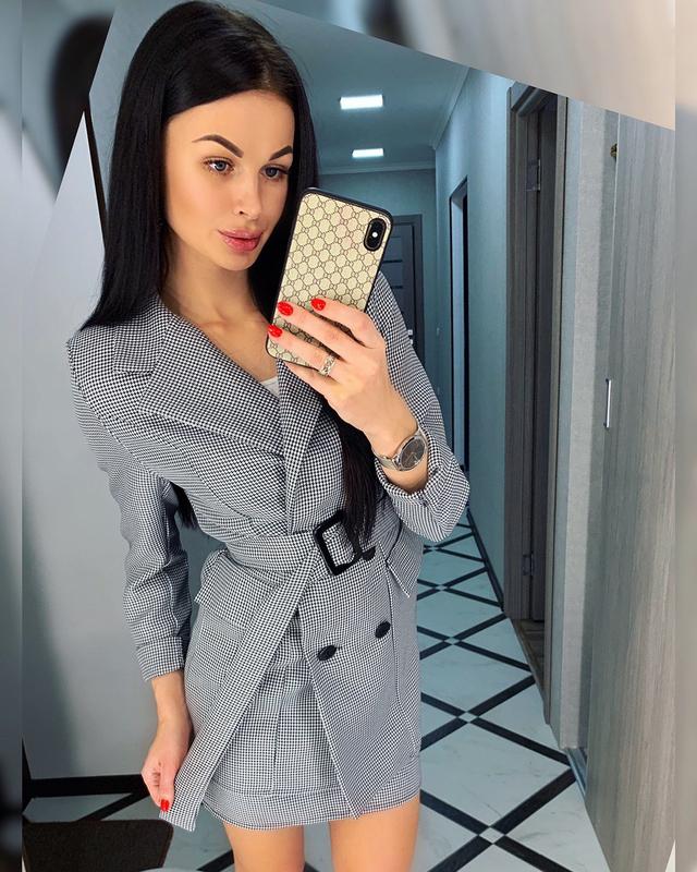 Тканина: габардин; Розміри: 42-44 та 44-46; Довжина піджака: 74 см; рукав Довжина: 60 см; Довжина спідниці: 44 см; Накладеного немає! Оплата 100%, відправка новою 1-3, Укр поштою 2-6 робочих днів