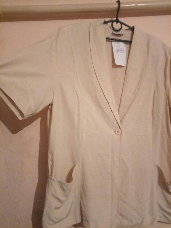 жакет: ПОГ 65см, ПОТ 61см, ПОБ 64см, плечо 17см, рукав 32см, длина 73см;