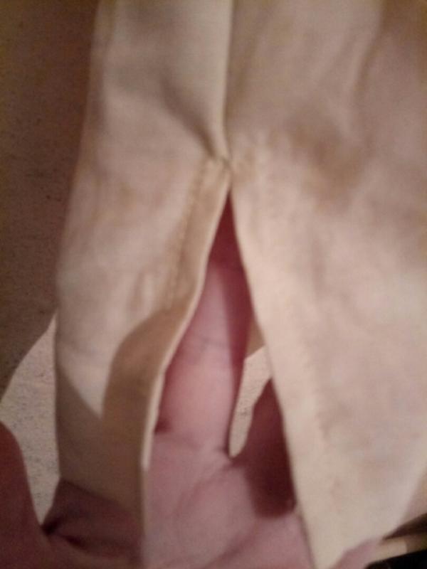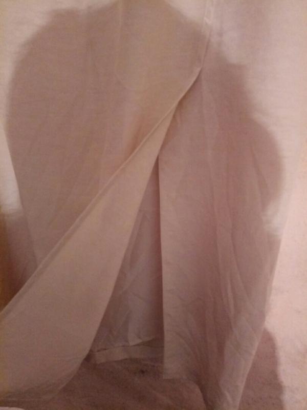 Юбка: на подкладе, по бокам пояс на резинке, сбоку впереди разрез, эта же сторона декорирована завязкой с металлическими концами, длина миди.