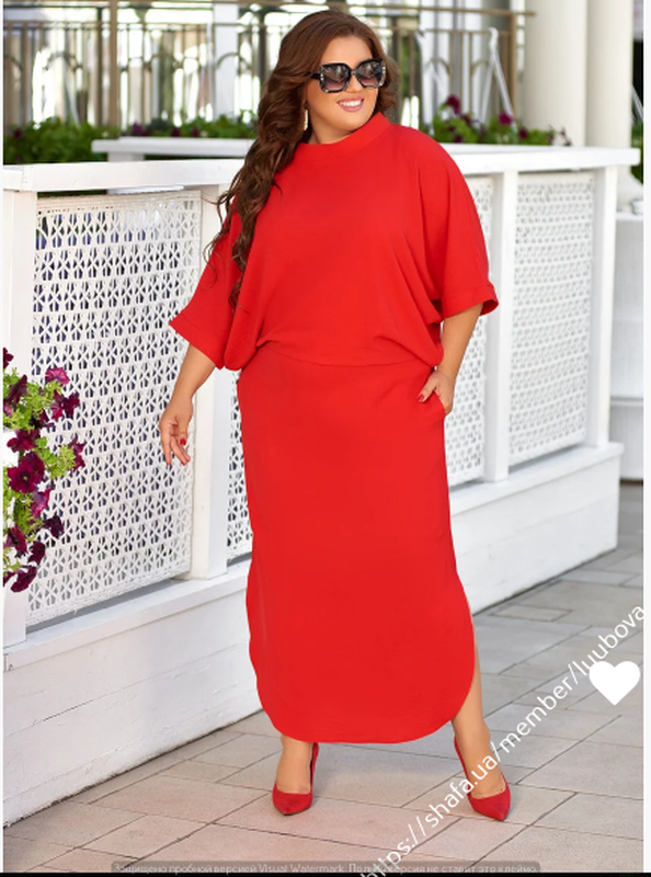❤️ https://shafa.ua/member/luubova ❤️ 💜В наявності💜 Код: ВЛ 7635пю Ціна:850грн спідничний Костюм батальних розмірів, з довгою спідницею Розміри-50-52,54-56,58-60 Тканина-американський креп Кольори - жовтий, червоний, чорний, Хакі Вільна кофта з рукавом до ліктя, маленька стійка на комірі, спідниця на широкій резинці, з боків розрізи. Параметри моделі ОГ106, ОТ90, ОБ114, ріст 165см, на ній представлений розмір 50-52.