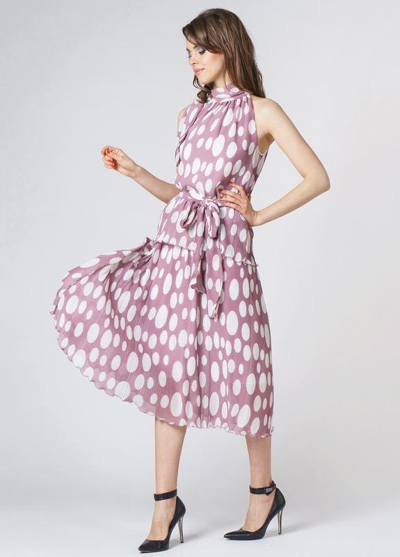 Легкий костюм блуза і спідниця. Блуза прямого крою, на підкладі, зав'язується на шиї, довжина 58 див. Спідниця - міді на підкладі, пояс на резинці, довжина 80 див. Тканина: Шифон - гофре, віскоза 60%, поліестер 40%. Розмір 36 (44) - полномерный S, можна М. Укрпошта, Нова пошта