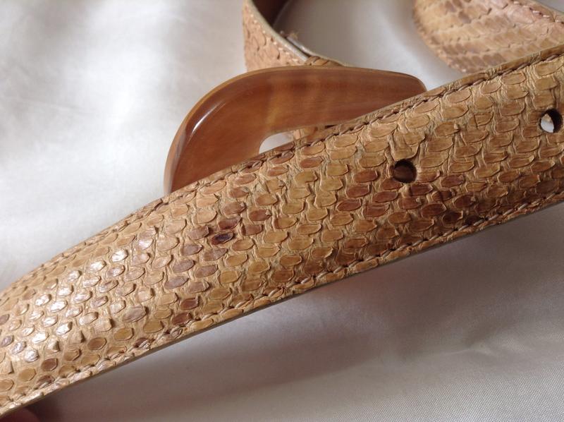 Выполнен из кожи питона в светло-бежевом оттенке.