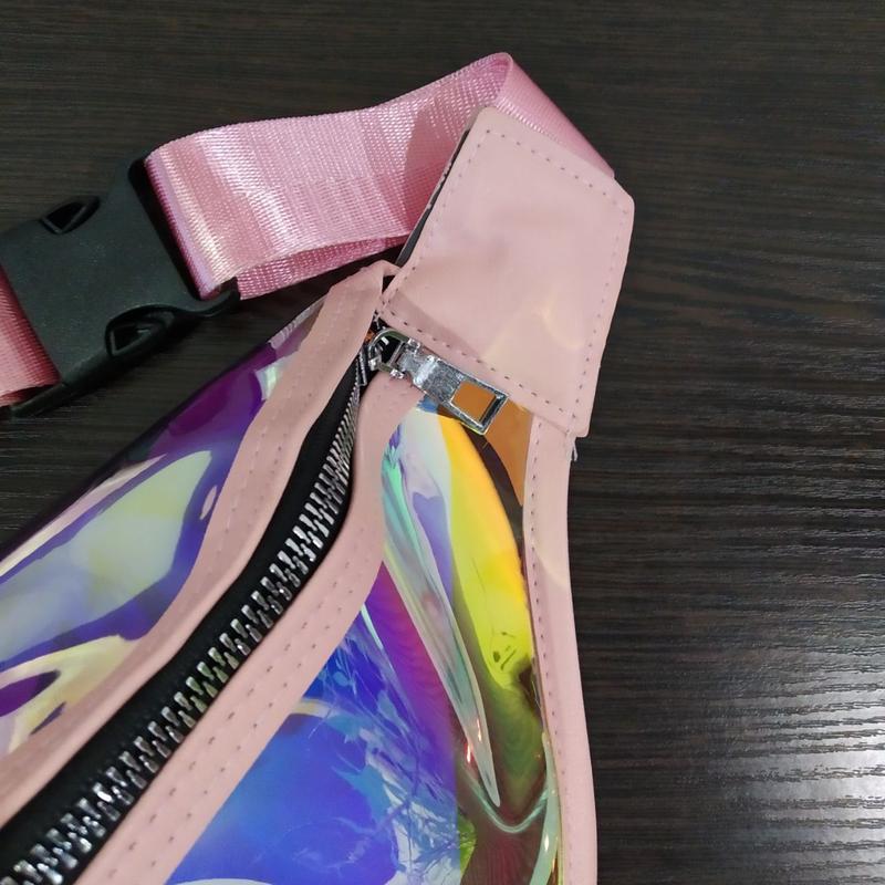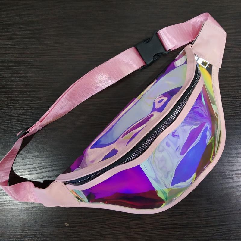 Сумка на пояс бананка голографическая лазерная галограмма топ качество розовая