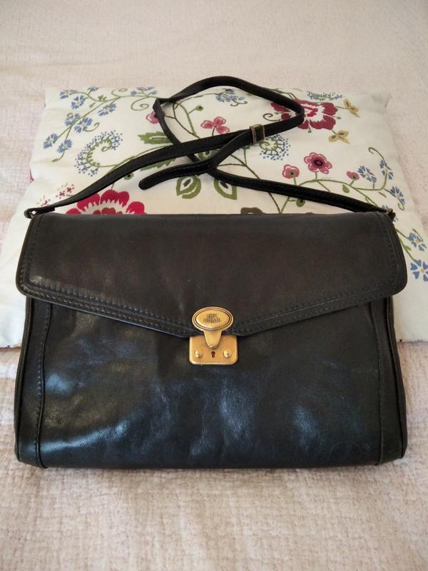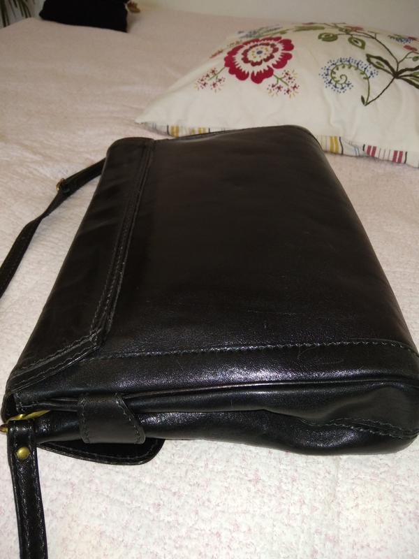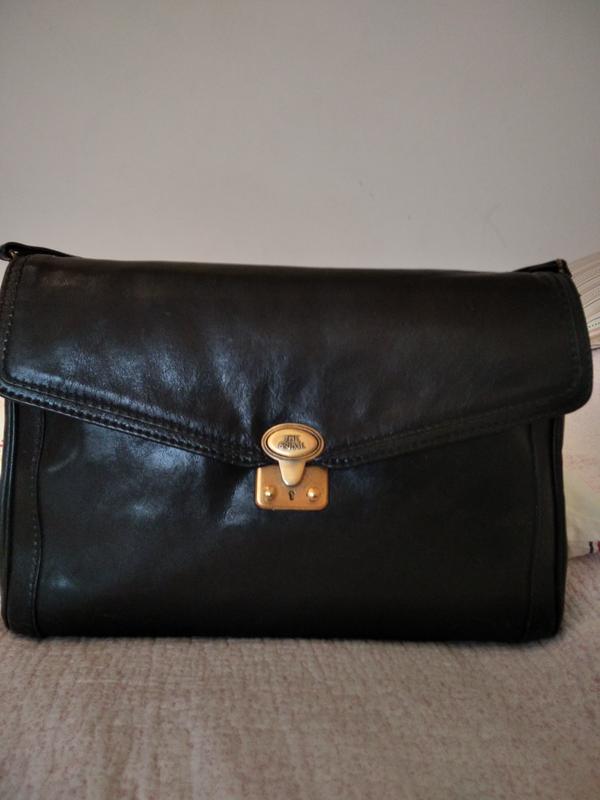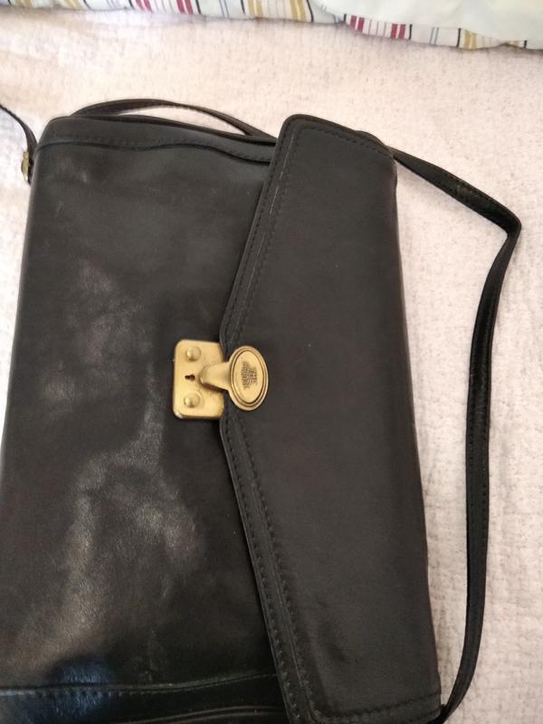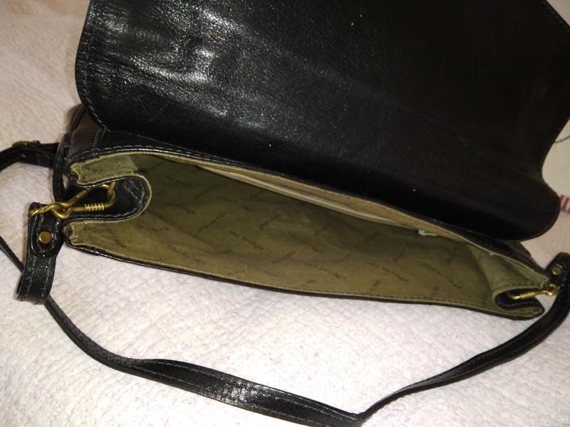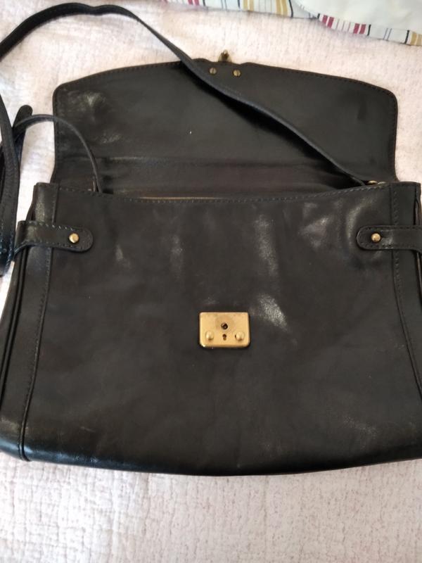 Мега качественная кожа.Сумка держит форму.Есть минимальные повреждения на защелке.Одное большое отделение и боковой карман на молнии.Повреждения отсутствуют.