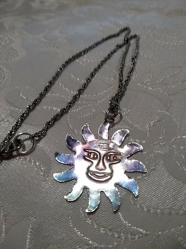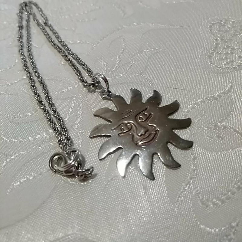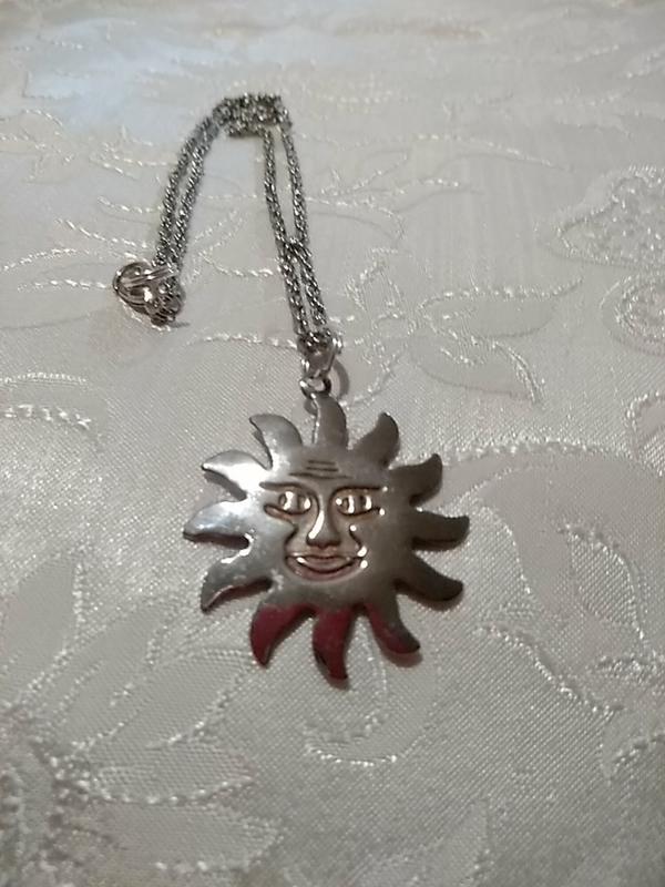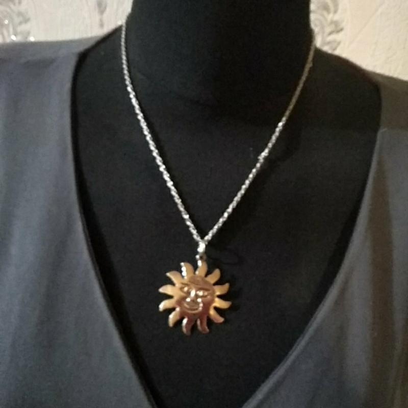 цепочка в серебряном цвете с кулоном солнце . длина цепочки 43 см