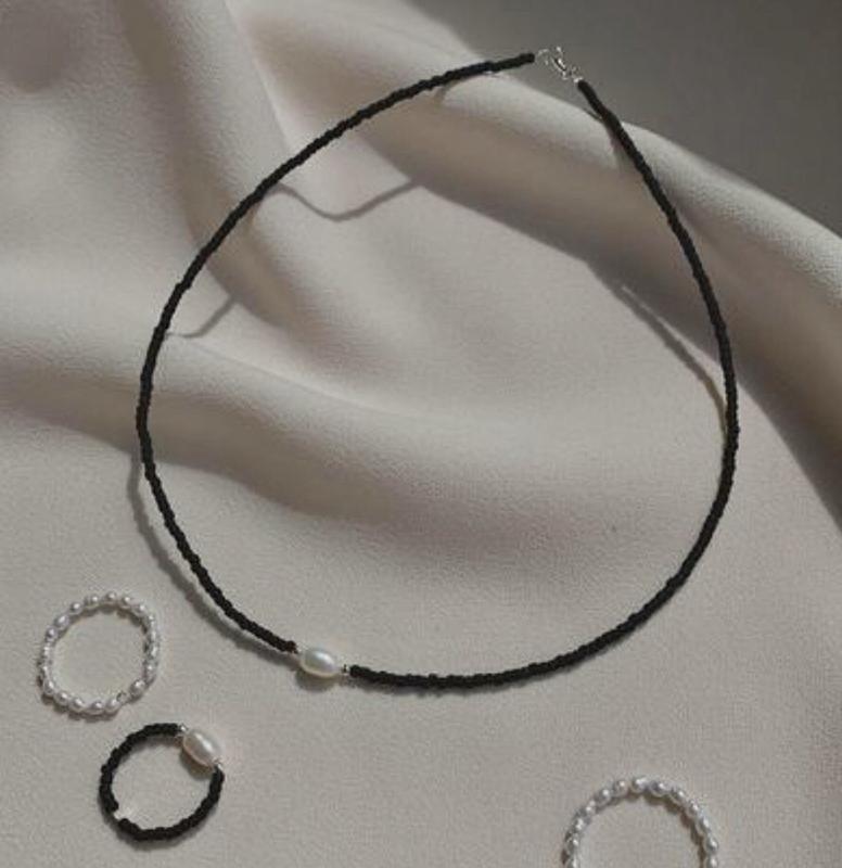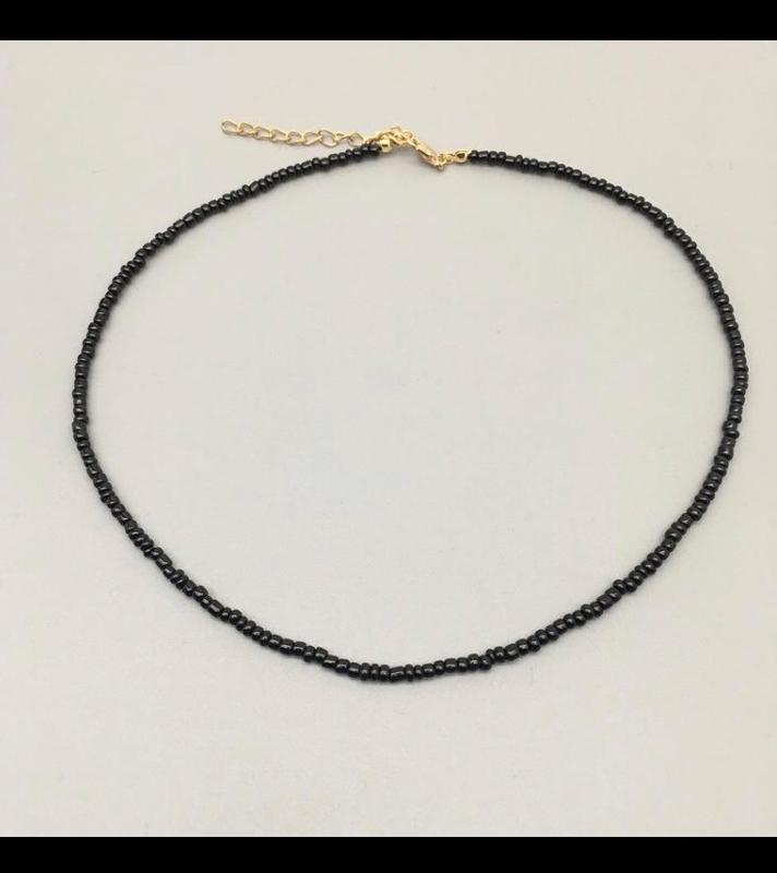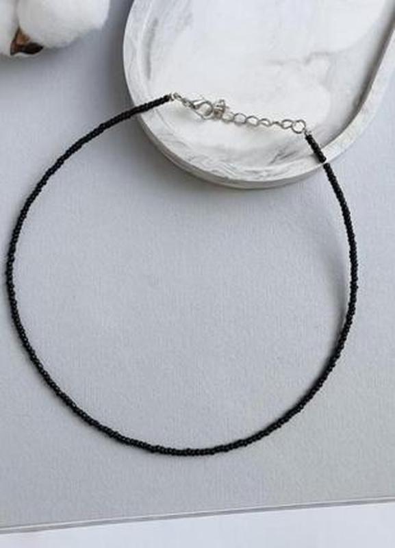 Чёрный чокер из бисера украшение колье на шею тренд трендовый топ стильное