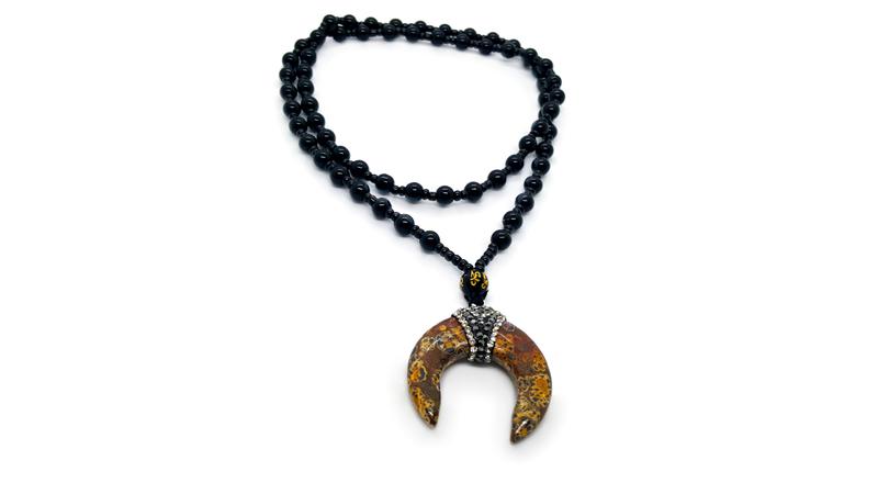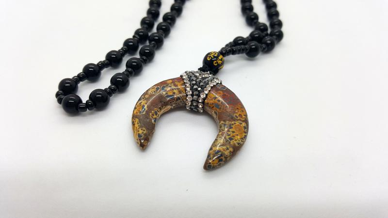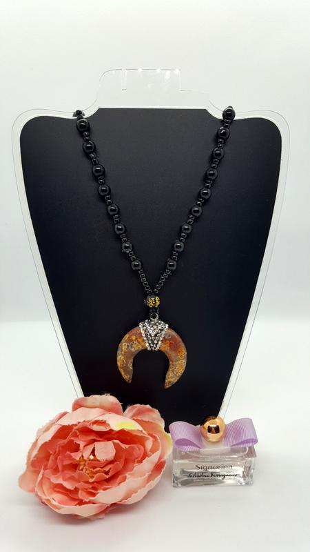 🌙✨ Колье с подвеской из натурального камня песочная яшма в форме месяца лунницы на бусах из черного стекла и бисера. Это украшение имеет мощную энергетику луны (см описание амулета ниже). Фурнитура серебристого цвета ,есть регулировка длины. Смотрите видео-обзор (вверху страницы) этого колье, чтобы увидеть всю его красоту.