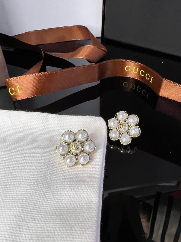 Брендовые серьги-гвоздики с жемчугом Майорка в стиле Гуччи. Позолота. Люкс