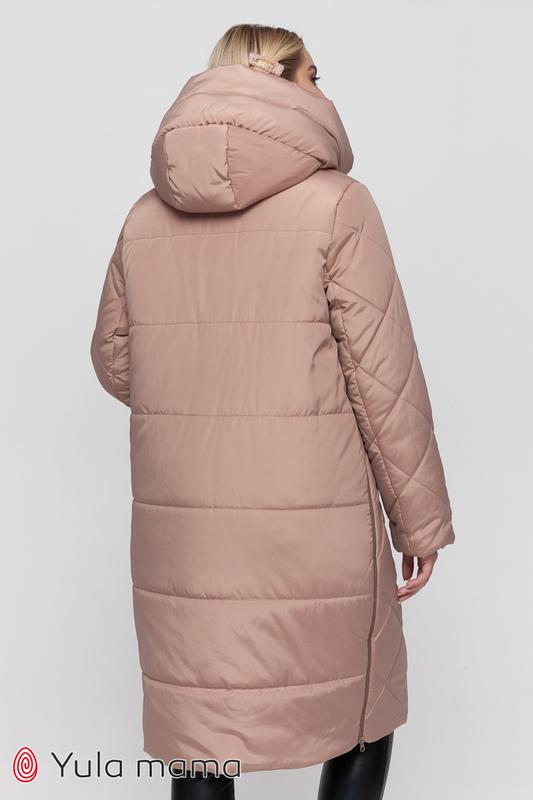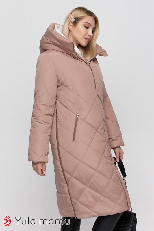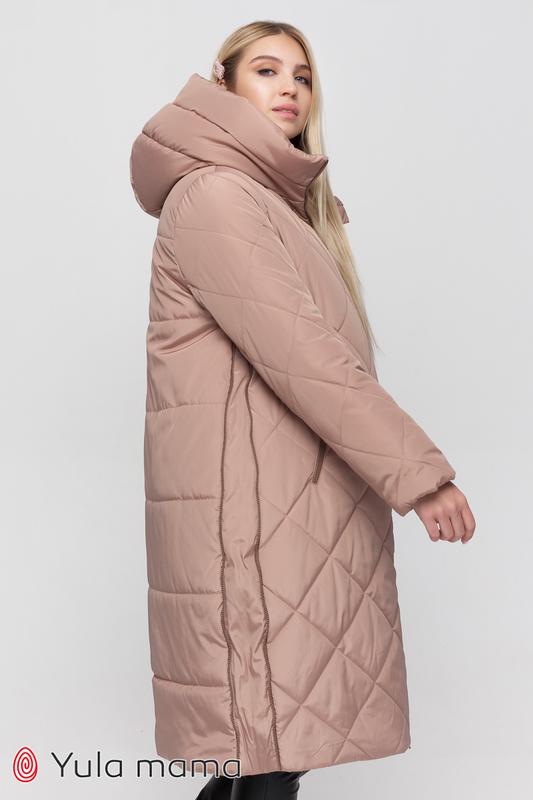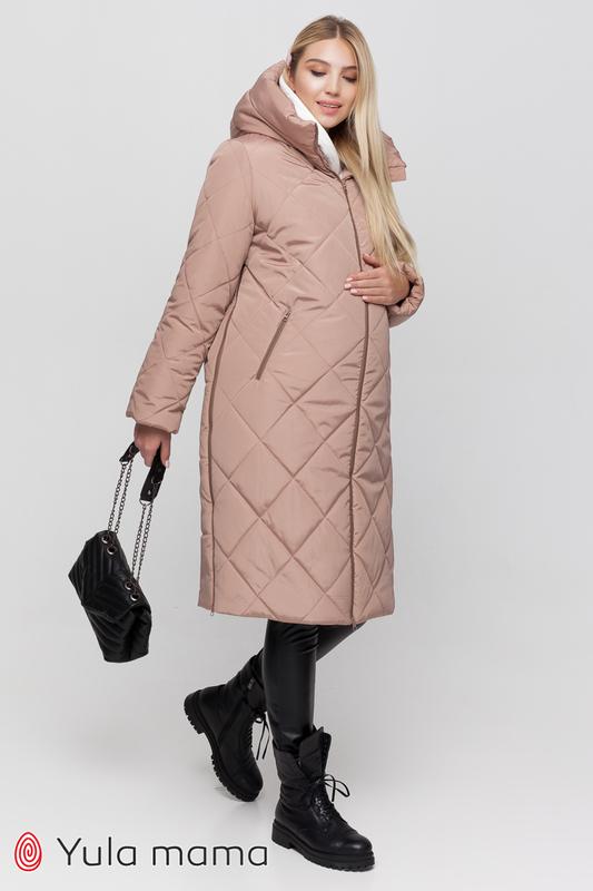 Зимнее теплое пальто для беременных из плащевки с боковыми расширителями.