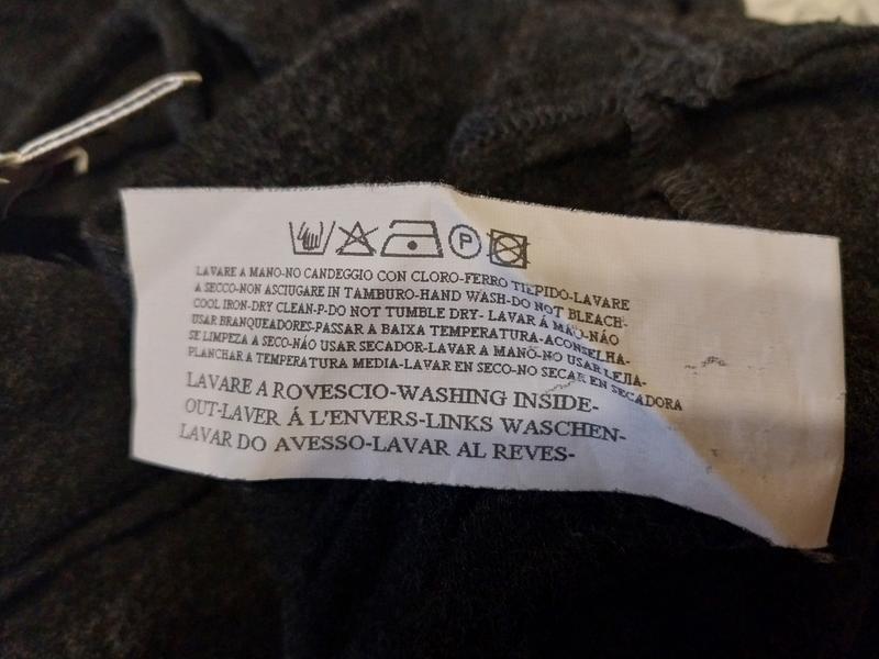 Имеются нашивки с названием бренда из переда в левом нижнем углу и сзади у воротника.