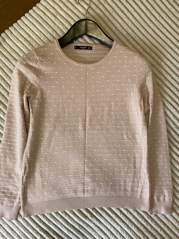 Кофта, джемпер пыльно- розового цвета в белые крапинки, размер S, подойдет и на М. В составе вискоза и эластан, приятный и мягкий к телу. Длина 54 см, ПОГ 44 см, плечи 34 см, длина рукава от плеча 56 см.