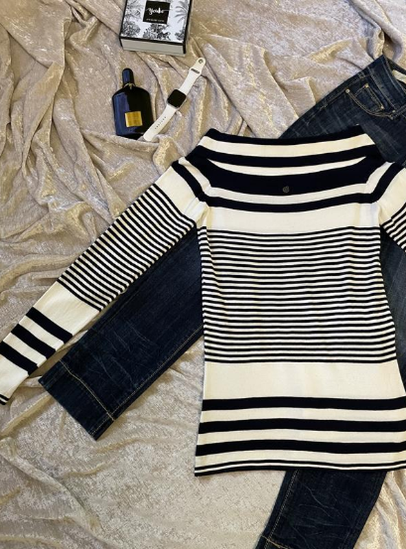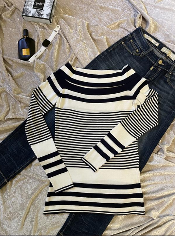 Красивая горловина, которая позволяет разнообразить образы, например, оголить плечо.