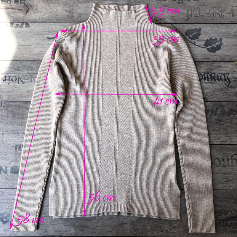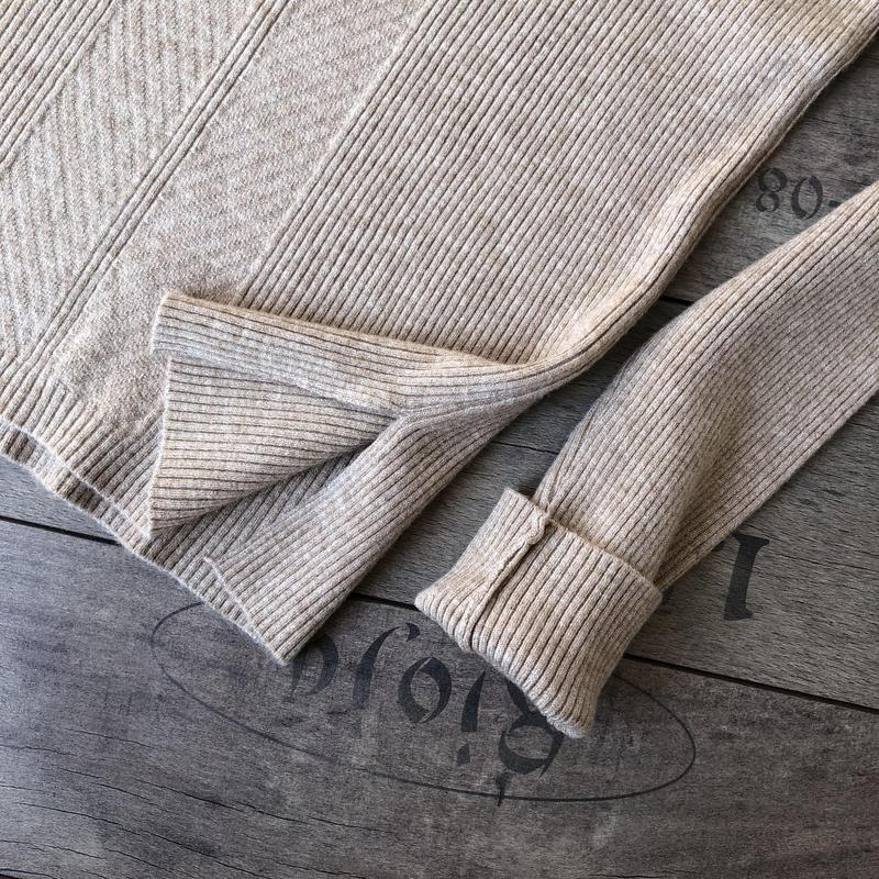 Очень мягкий свитерок с воротником стоечкой.По бокам небольшие разрезикиВязка - лапша с рисунком посерединеРазмер - SЭтикетки отстутствуют