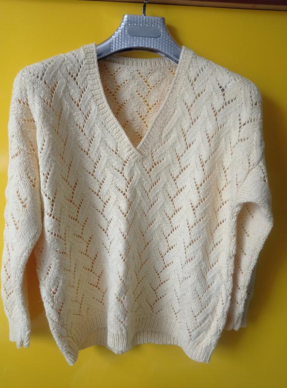 Плетеный ажурный джемпер. Плечи 56 см, ПОГ - 56 см, вырез - 20 см, рукав от горловины - 63 см