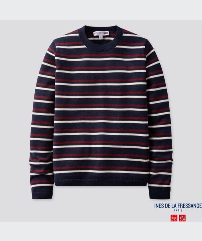 Темно-синий джемпер в полоску из 100% шерсти. Коллаборация Uniqlo и Ines De La Fressange. Плотная вязка из двух нитей очень тонкой высококачественной мериносовой шерсти. Шерсть гладкая, приятная к телу. Размер L Состав : 100% шерсть Длина - 63 ПОГ - 51 Плечи - 40 Рукав - 62