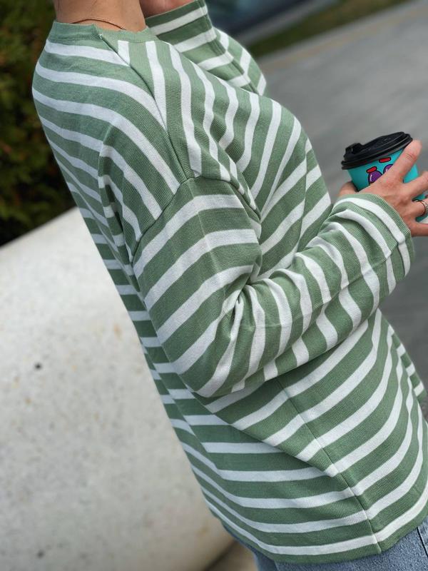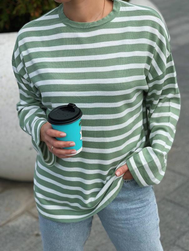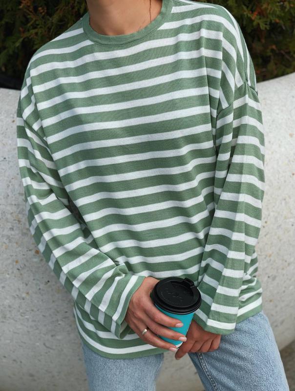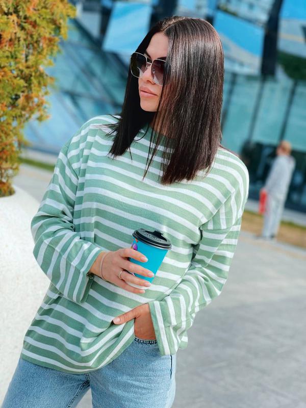 Комфортные и нежные джемпера, из тонкого трикотажа в трендовых оттенках. Легкий, очень приятный к телу материал. Модный полосатый джемпер OVER SIZE изготовлен из акриловой нити, которая очень приятна к телу. Украшает свободный джемпер широкие горизонтальные полоски. Такой джемпер подходит для создания образов с совершенно разными видами низа от любимых джинсов, до классических брюк.