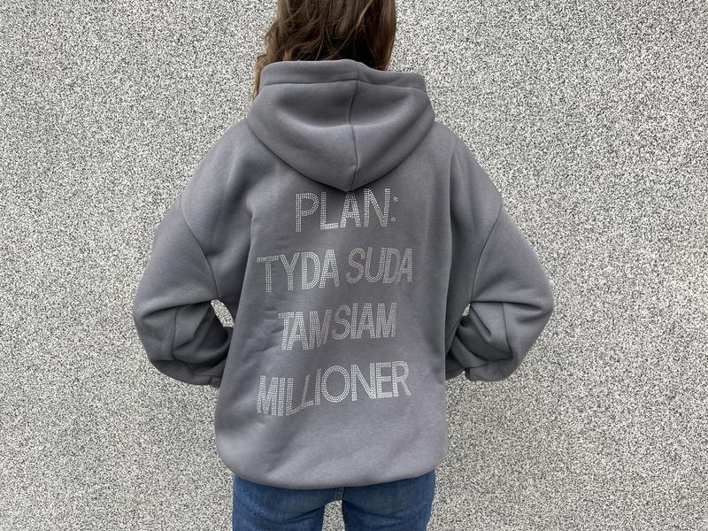Размеры: 42-48Ткань: трехнитка на флисе хорошего качества. Надпись из камней. Цвета: черный, графит