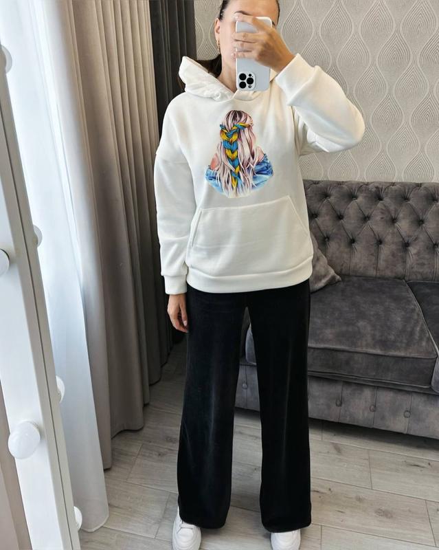 Универсальное худи с кармашком спереди, низ и рукава на манжетах, капюшон без шнурка