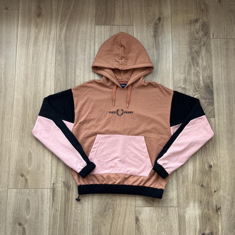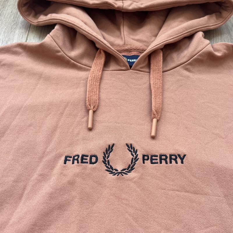 Стильное укороченное худи от Fred Perry в красивом цвете. Выставки из черного и розового цвета на рукавах, кармане и резинке. На груди вышите большое лого бренда. Удобный большой капюшон, регулируемый комками. Низ фиксируется с помощью системы утяжек. Состояние: идеальное, как новое.