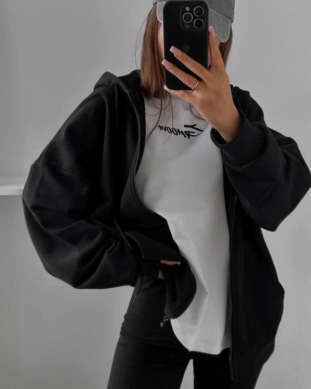▫️объемное зип худи, идеальное на повседневный 🙌🏻▫️цена - 440 грн.▫️арт.194▫️материал - двунитка.▫️размер - 42-46.▫️цвет - черный, серый меланж.▫️имеет капюшон и большие карманы спереди 🙌🏻