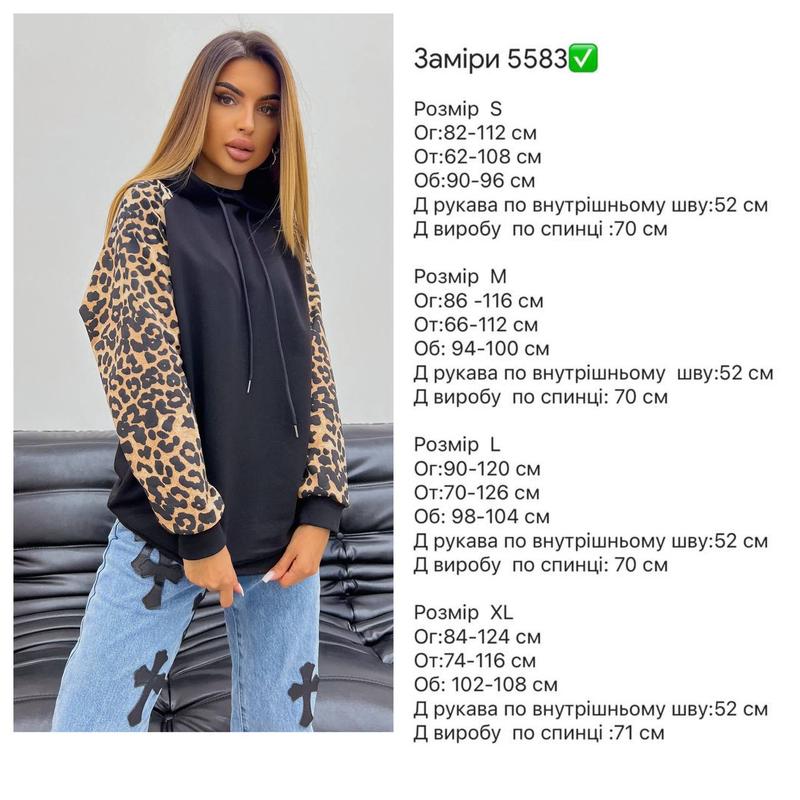 Женское худи арт. sat. 5583(click)Размеры: S, M, L, XLТкань: основа - турецкая петля, рукава - турецкая двухнить принт леоС капюшоном и со шнурками. Очень классный и стильный свитшот. Отличное качество.Цена 950 грн