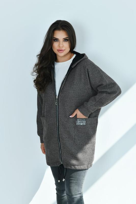 Опис: кардіган з накладними кишенями , застібка на молніі, рукав на манжеті,низ виробу регулюється шнурком.