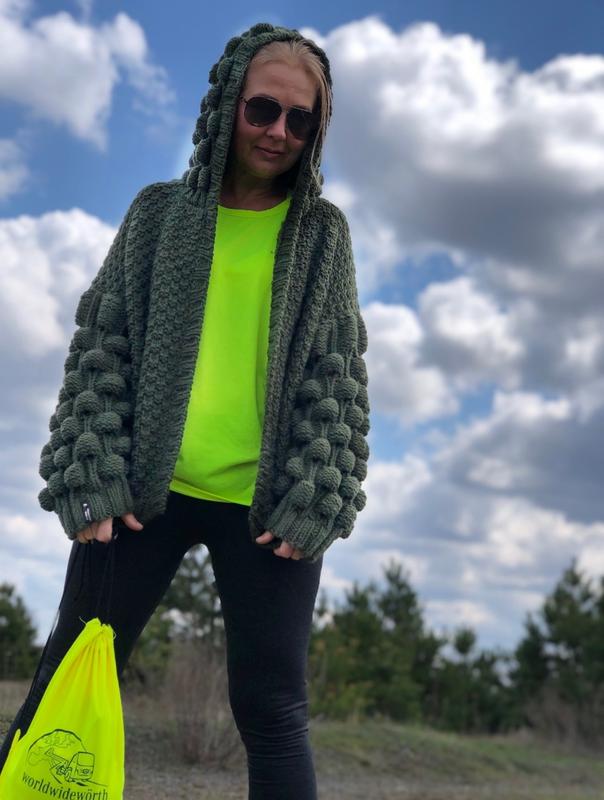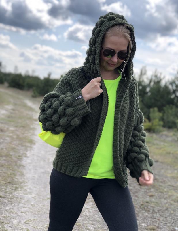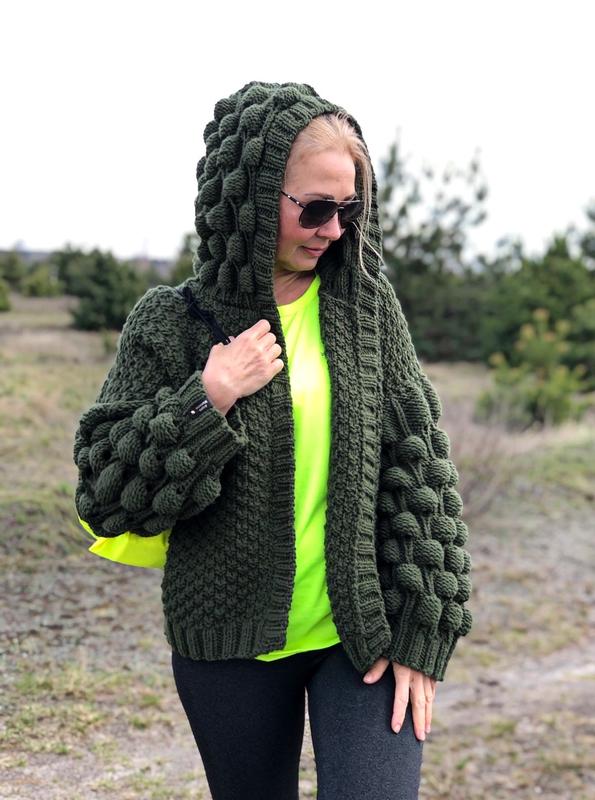 Бомбер ручной вязки из полушерсти с красивым фактурным узором на капюшоне и рукавах. Оверсайз. Цена указана до размера М включительно. На большие размеры цена будет немного выше из-за большего расхода ниток.