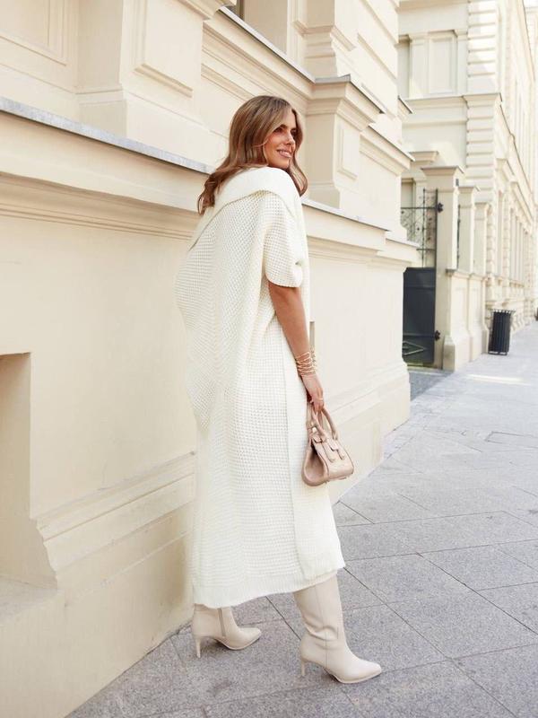 Кардиган-пончо oversize белого цвета длины мыды придаст акцент вашему образу.