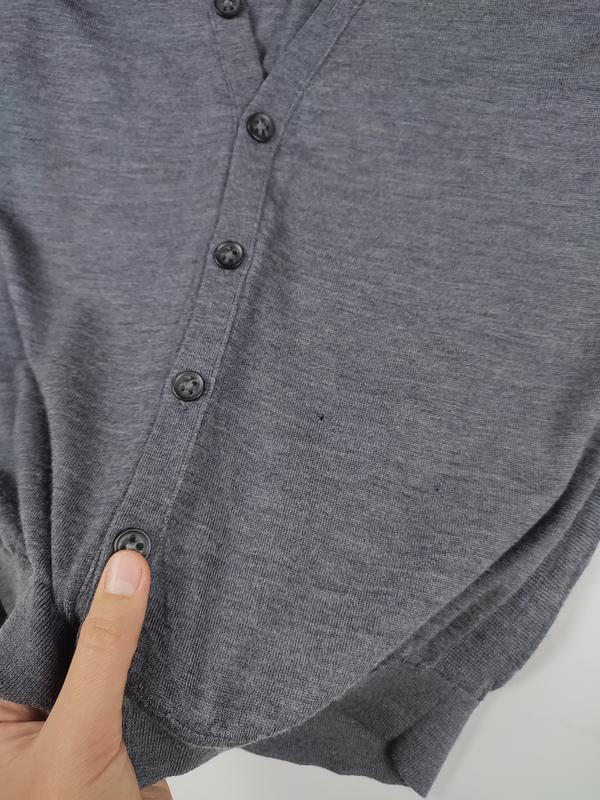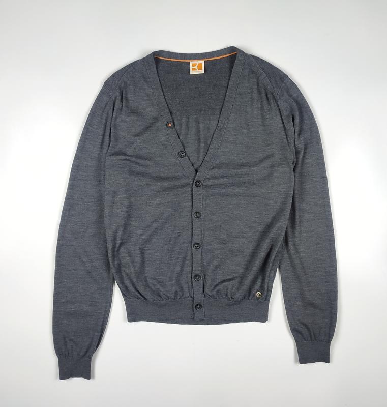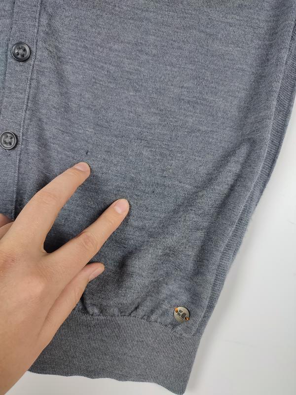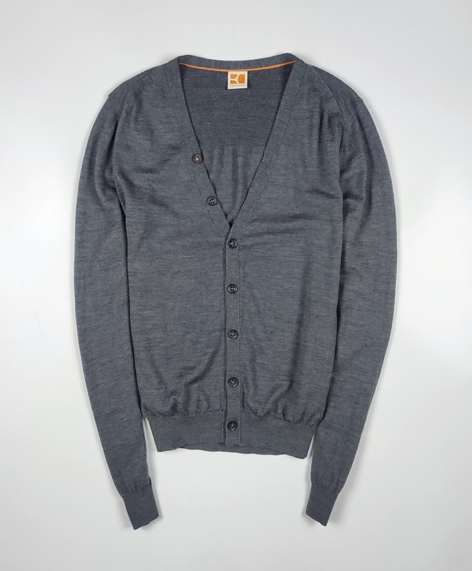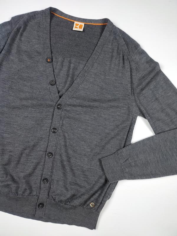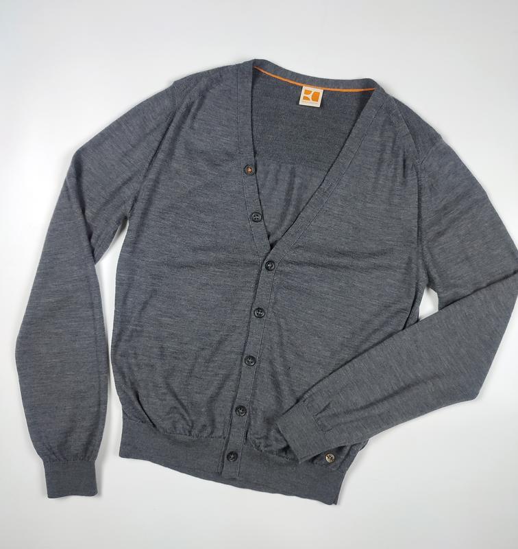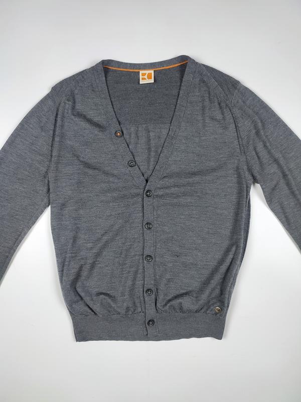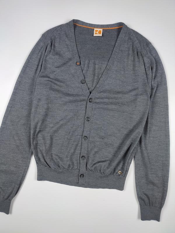 Классический кардиган на пуговках бренда Hugo Boss. Базовый фасон, серый оттенок. Сделан в Румынии. Состояние очень хорошее. Есть несколько дырочек, показал на последних фото. Поэтому отдаю по низкой цене
