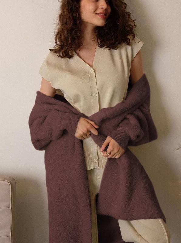 Кардиган 💙Модель : 0420Ткань : двухсторонняя мохра Размеры: 42-48 one size Цвета: черный и мокко.Теплый, мягкий, очень приятный к телу.Отличное качество.