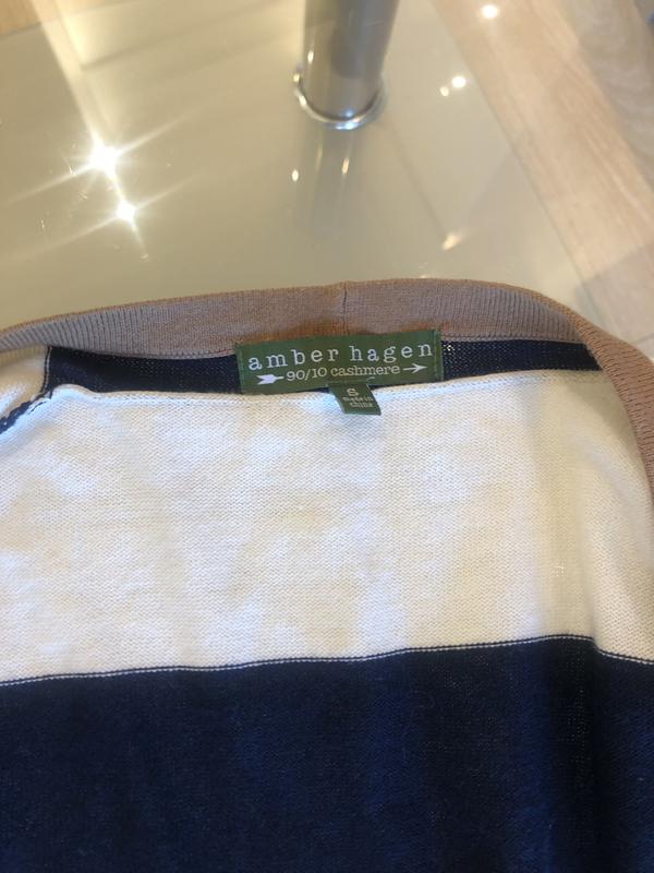 Стильный кадиган с сердечком от известного дизайнерского бренда Amber Hagen. Этот бренд пользуется огромной популярностью среди голливудских звезд. 90 cotton/10 cashmere. Дополнительно идет кашемировый пояс в комплекте. В хорошем состоянии, есть небольшая зацепка в задней части (на фото). Размер S. Котил ~ $200.
