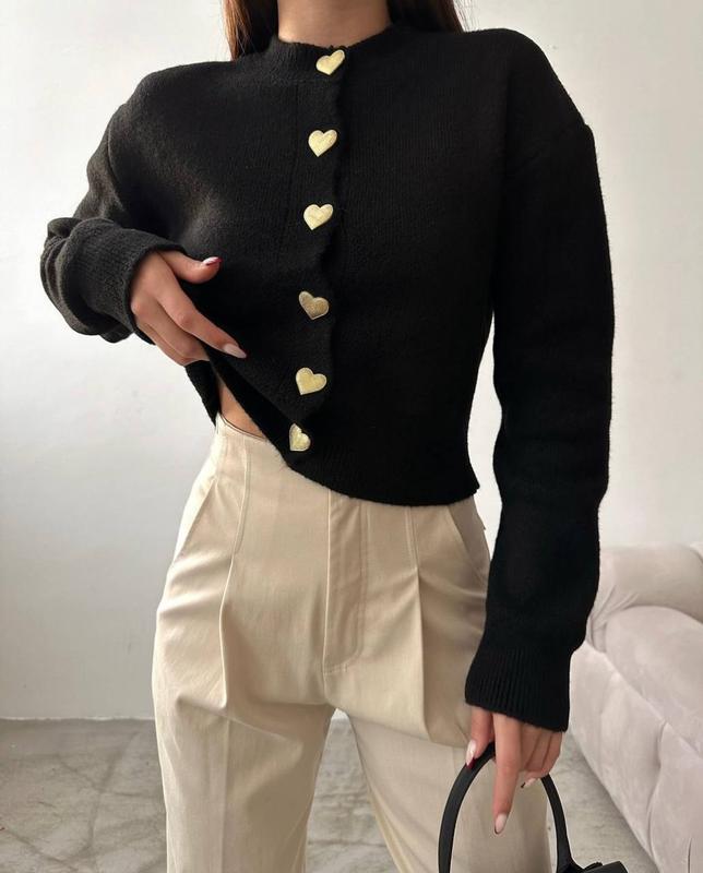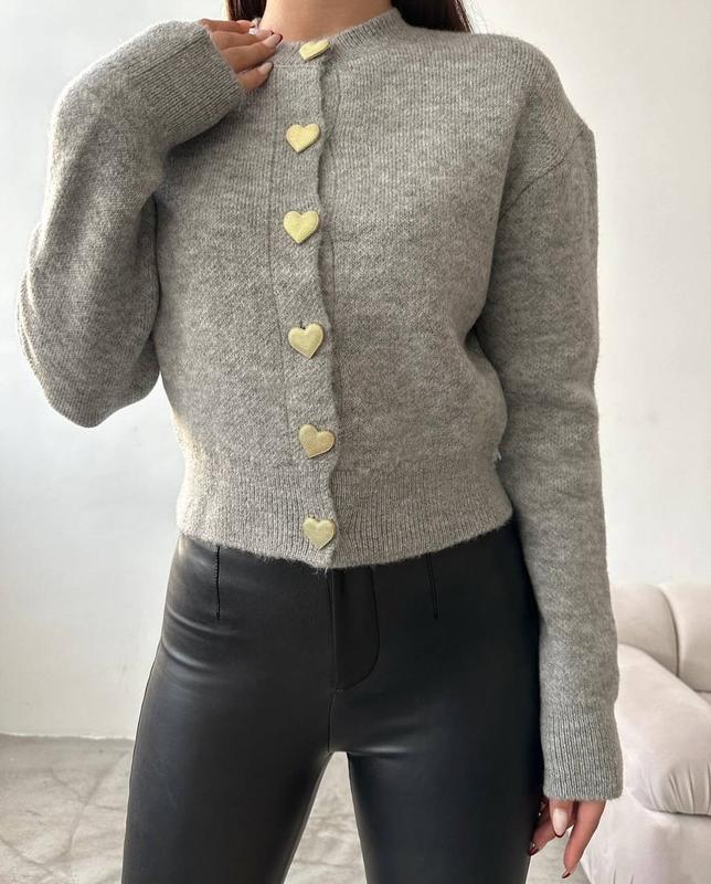 Новинка ✔️✔️Базовые кофточки на пуговицах с сердечками, мягкие и комфортные, приятные к телу 🥰▫️Черный,серый и розовый ▫️Высокое фабричное качество, Турция 🇹🇷▫️Размер единственный Ширина 48 см Длина 48 см Рукав от плеча 56 см