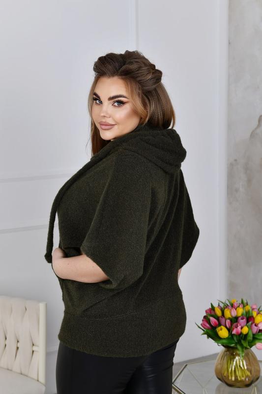 Невероятно стильный кардиган из мягкого внятого полотна ( растяжимость средняя). В кулиску капюшона продет объемный шнурок из основного материала. Спереди обработанный карман «кенгуру». Рукав оригинальной укороченной формы. Застегивается на молнию.