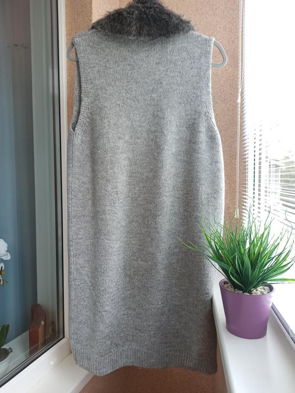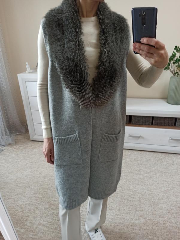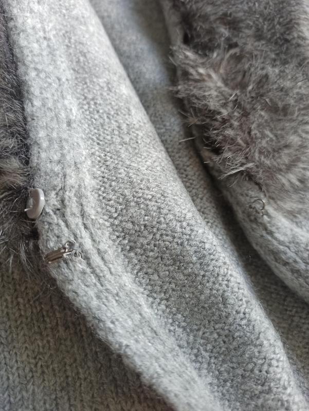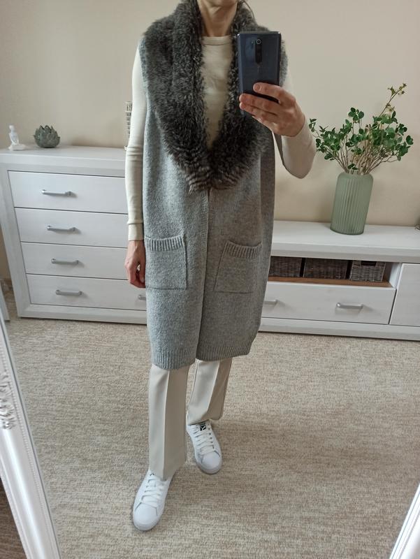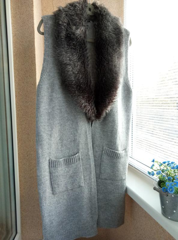 Красивий кардиган/ жилет/накидка з присебним штучним хутром. Мех при необходимости можно снять, пристегивается на пуговицах.