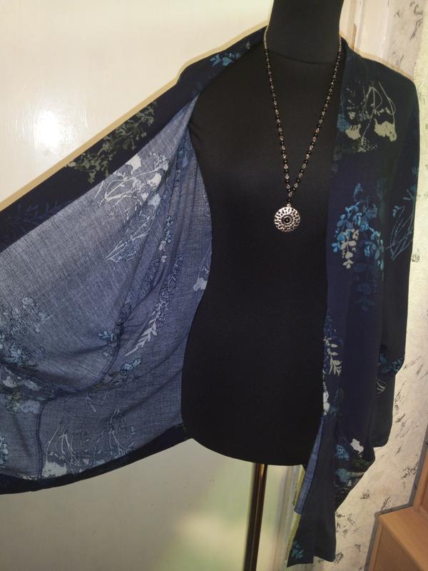 Натуральный,тёмно-синий,свободный кардиган в цветочный принт, с цельнокроеным рукавом-кимоно и карманами,большого размера,Lindex,Бангладеш.Размер на бирке L,но ориентируйтесь по замерам: ПОГ -от подмышки до подмышки 69-70см; передняя полочка 26-27см; ПО по канту спинки-63-64см;ПО по канту впереди -25,5см; длина от плеча впереди-73-74см,длина рукава от горловины 61см Приятная вещь,подойдёт на лето,тёплую весну-осень.