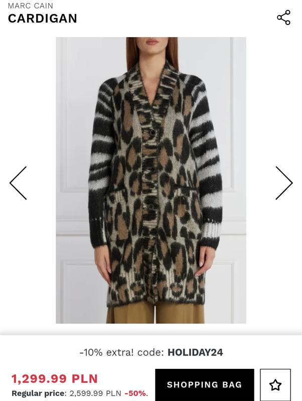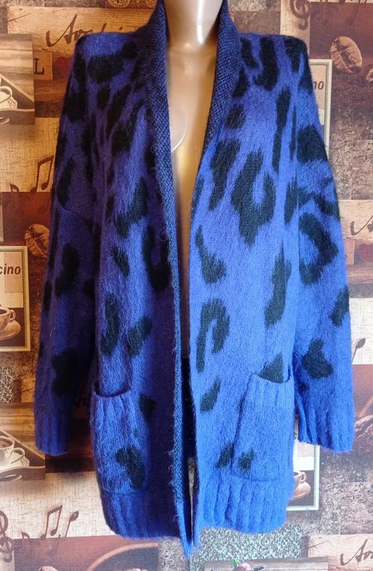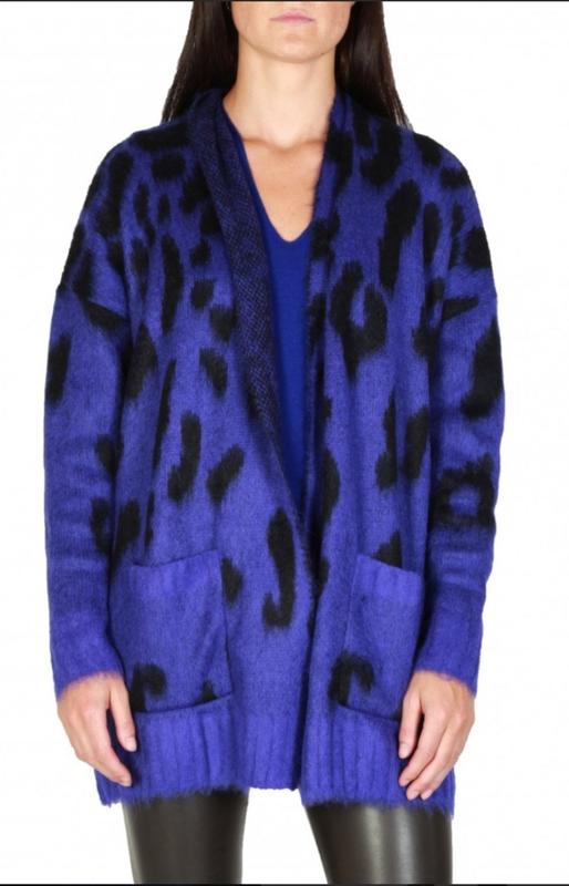 Кардиган от бренда Marc Cain. Кардиган расслабленного силуэта из пушистого мохерного материала в смеси с шерстью альпаки. Этот жаккардовый вязаный кардиган имеет большой леопардовый дизайн, который действительно привлекает внимание. Глубокие рукава и шалевидный воротник идеально дополняют образ.