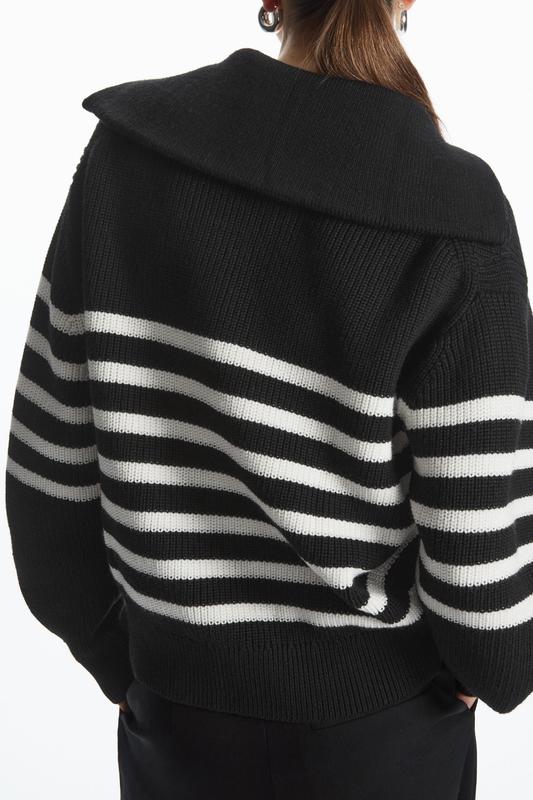 XL / 54удобный вязаный джемперизготовлен из ответственно произведенной шерсти и хлопкаимеет непринужденную посадкуделикатно украшен широким воротникомнизкая линия плечанаполовину молния