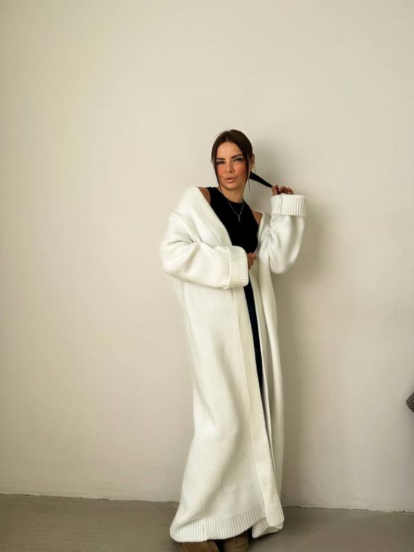 Кардиган женский оверсайз вязаный теплый молочный качественный стильный туречень