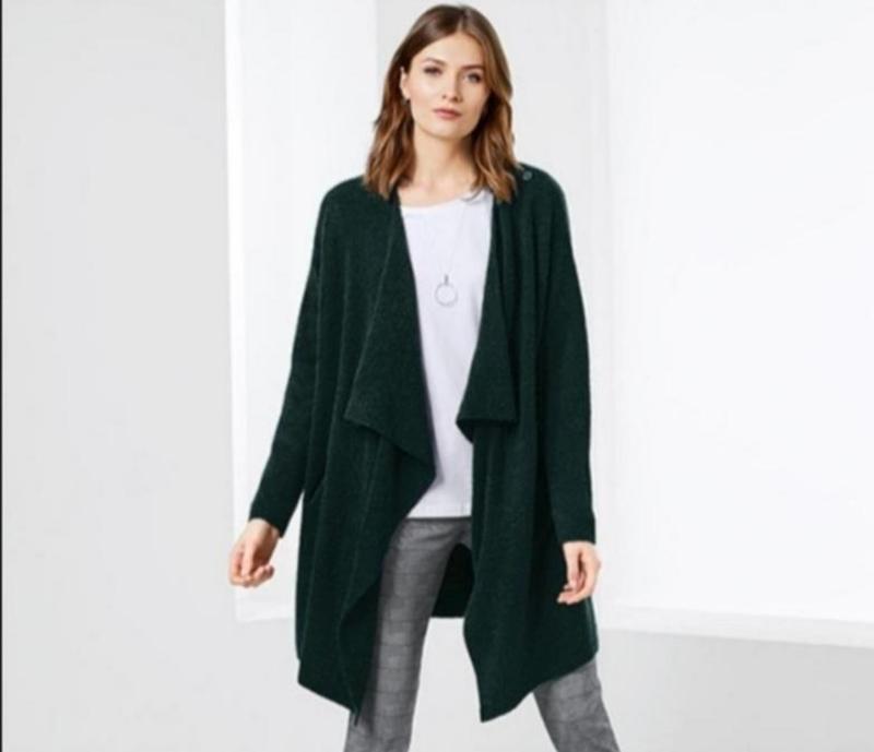 Плечи кардигана широкие, рукава и подол удерживаются ребристыми манжетами. Кроме того, Elasthan обеспечивает стабильность размеров одежды и идеальную посадку с высоким комфортом при носке.