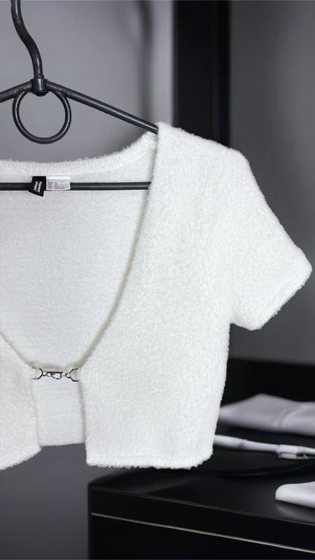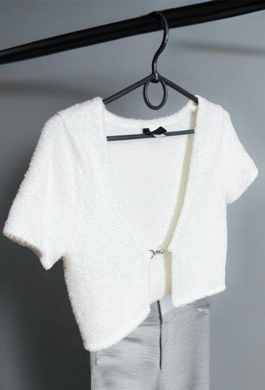 Пушистый кардиган на цепочке.Можная одевать поверх одежды или как топ.