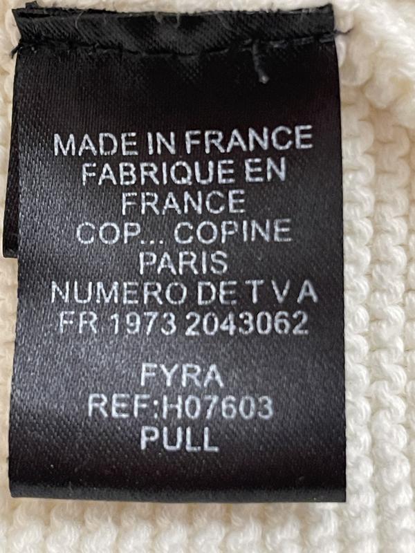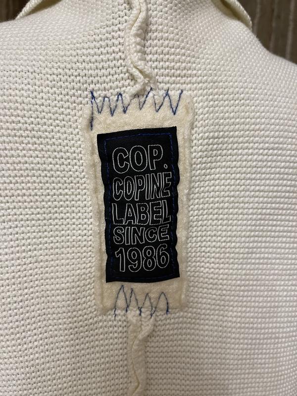Кофта / пиджак молочного цвета, Франция, бренд Cop. Copine. Тканина - вʼязаний котон. Размер 42, но очень маломерит. Плечи 41 см, ПОГ 50 см, длина 55 см, рукав 66 см. Без застежки. Без дефектов.