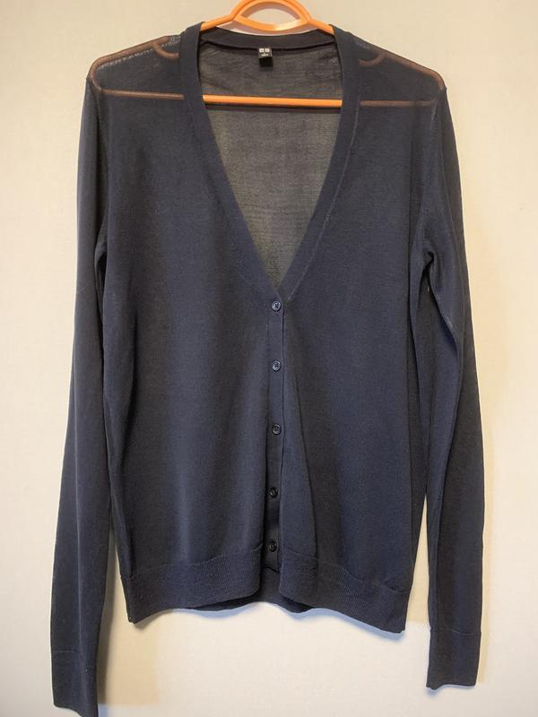 Женский полупрозрачный кардиган, кофта от японского бренда Uniqlo в размере L, возможно М.Цвет темно синий, в идеальном состоянии.
