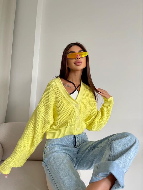 🚚Доставка: 📦Новая почта (наложка с предоплатой или полная оплата), Укр почта (полная оплата). ‼️Не нажимайте кнопку "купить", сначала нужно уточнить с продавцом наличие размера, и договариваться о способе доставки и оплаты (нажимаете "поставить вопрос")!️ Стильний укорочений кардиган на гудзиках. ▪️ Состав: 100% хлопок. ▪️ Цвета: молочный, розовый, кемел, синий, лимонный, зеленый. ▪️ Размир унivерсальный 42-46 (в качестве кардиганаильного кроя то можно на более бирюзовые настройки (S-XL) Параметри моделi на фото: Зріст: 170 см, ОГ: 88 см, ОТ: 65 см, ОС: 92 см. *Отправка в течение 1-4 дн.