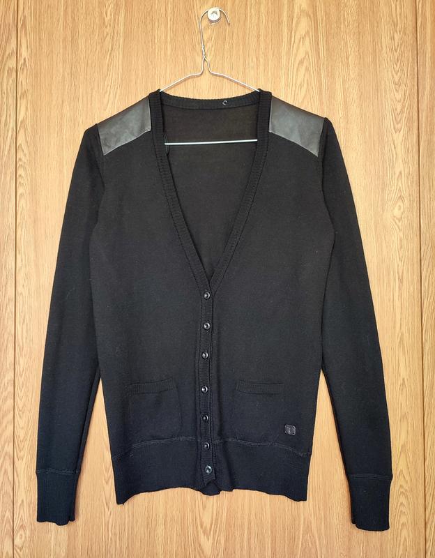 качественный черный кардиган/кофта из натуральной шерсти от "Trussardi"/оригинал - размер XS (наш 38р). Ориентируйтесь по любому замеру в объявлении.