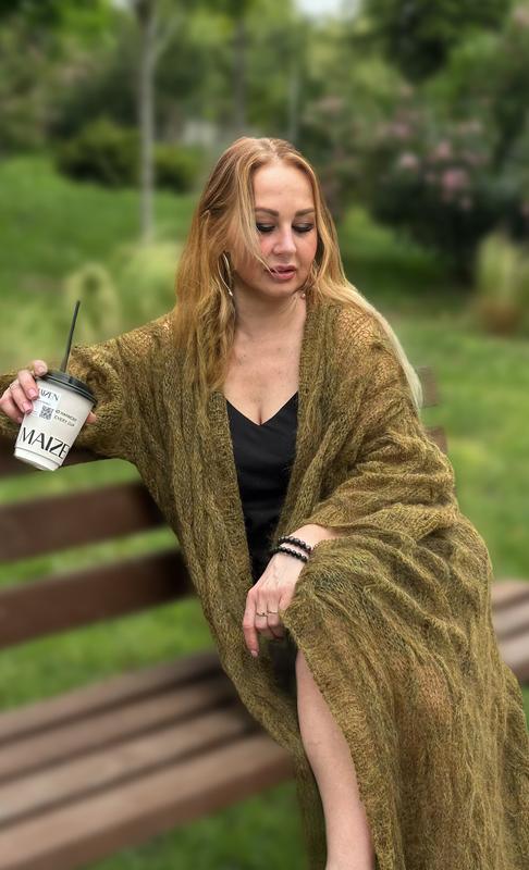 Кардиган жіночий oversize довгий мохеровий хакі оливковий оверсайз вʼязаний