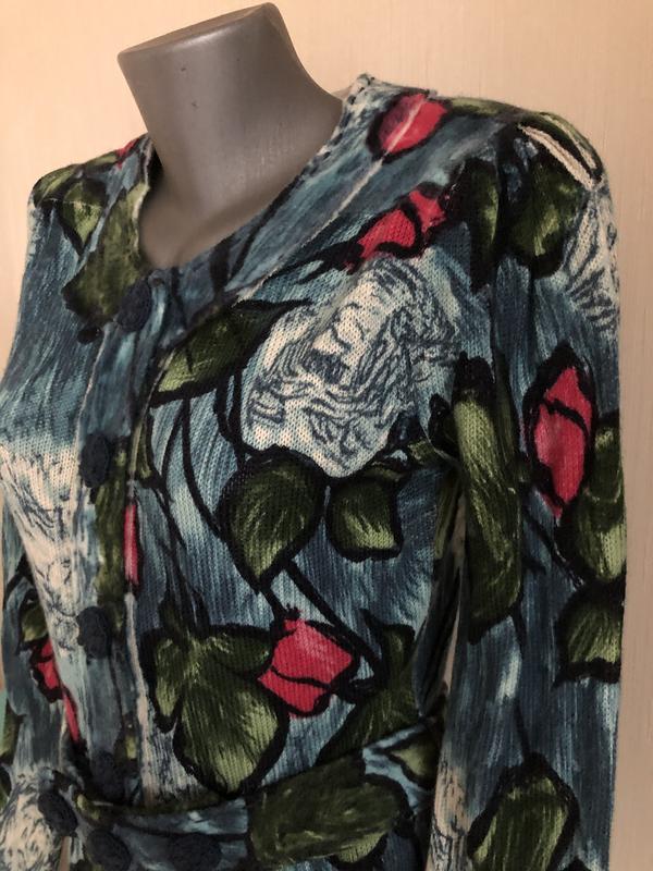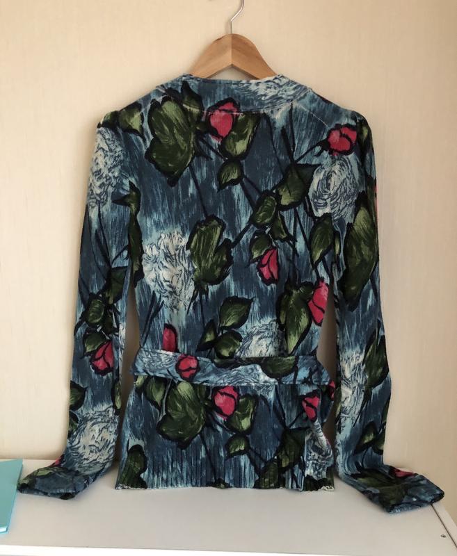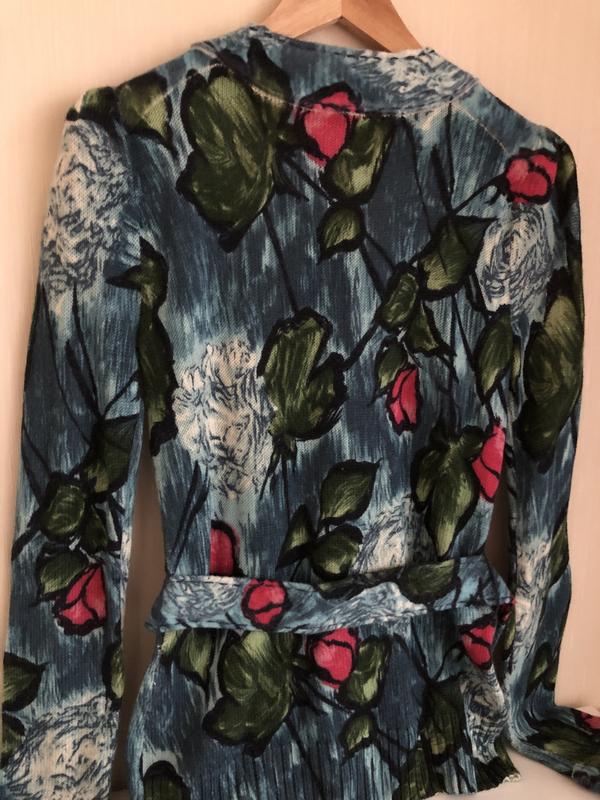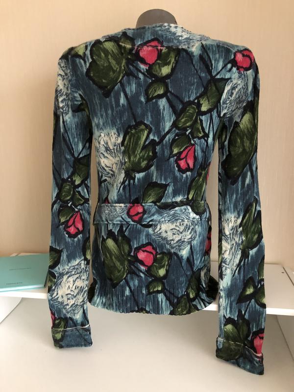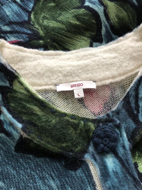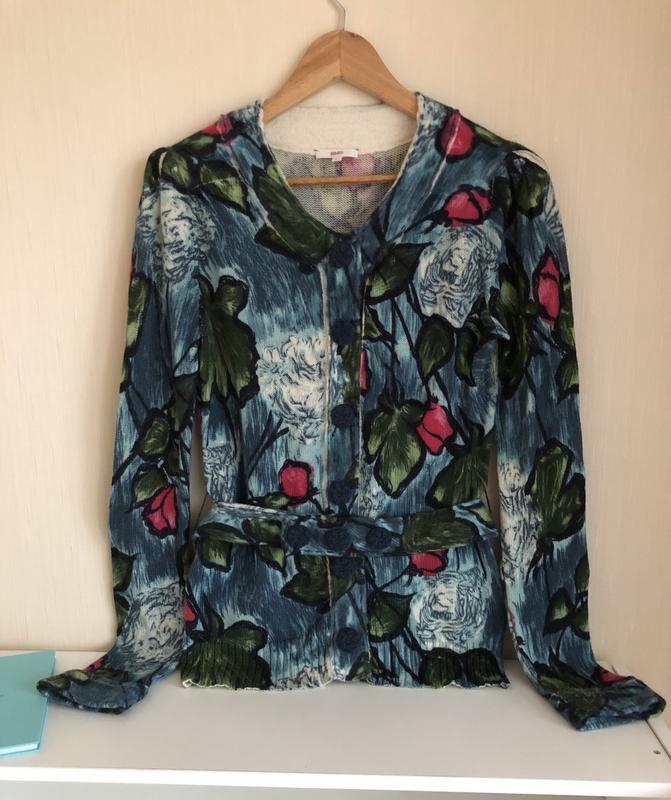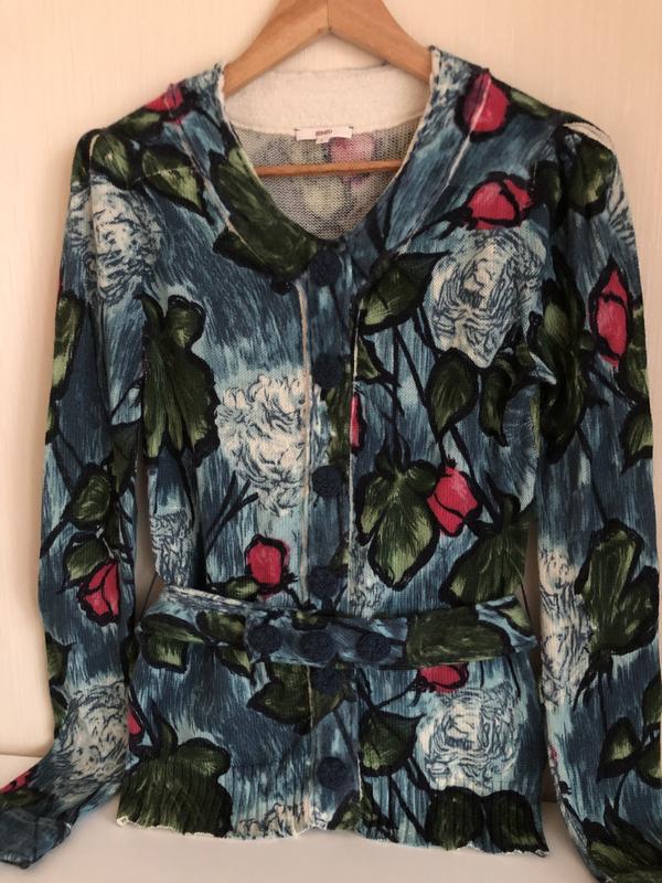 Стильная кофта на кнопках и с поясом Kenzo . Оригинальный рисунок . Второй такой не встретишь :} . Состояние новой . Размер L. Можно смотреть на М.Длина 65 см, ширина под рукавами 46 см, рукав 71 см.