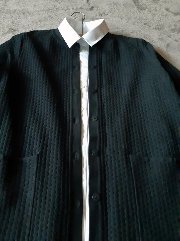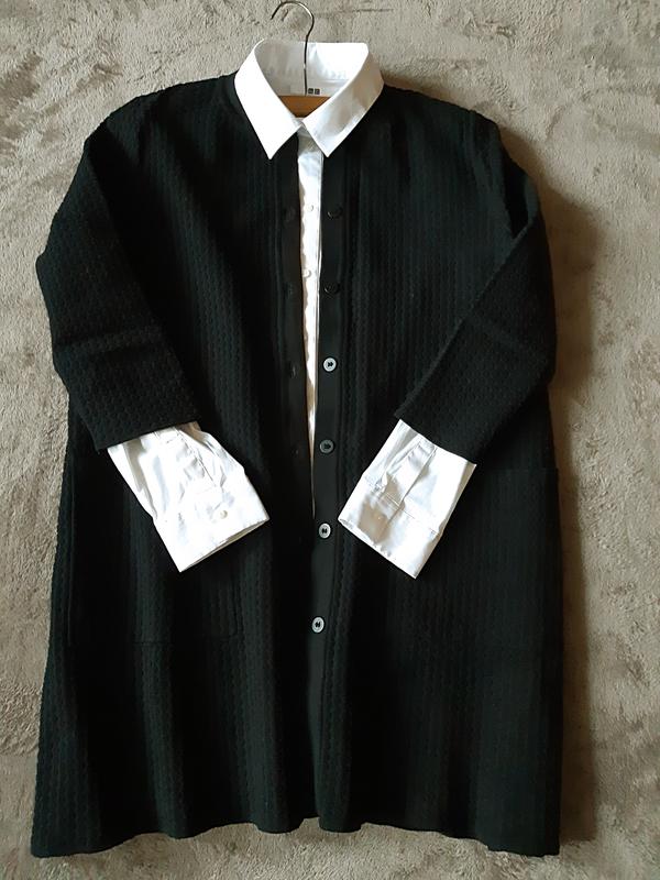 Женская длинная кофта, кардиган COSОчень красивый Кардиган, средней плотности, застегивается на пуговицымодель А-силуэт, оверсайз, с накладными карманамиУказан размер S, подойдет на Xs-S-Mотличное состояние, интересный покрой